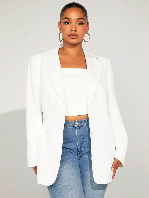 SHEIN SXY Plus Lapel Neck Hook And Eye Blazer