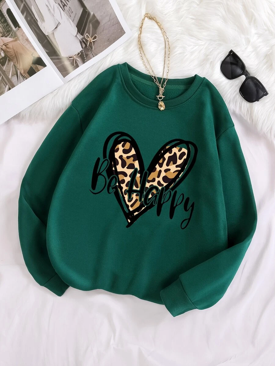 SHEIN LUNE Plus Leopard & Letter Graphic Thermal Lined Sweatshirt