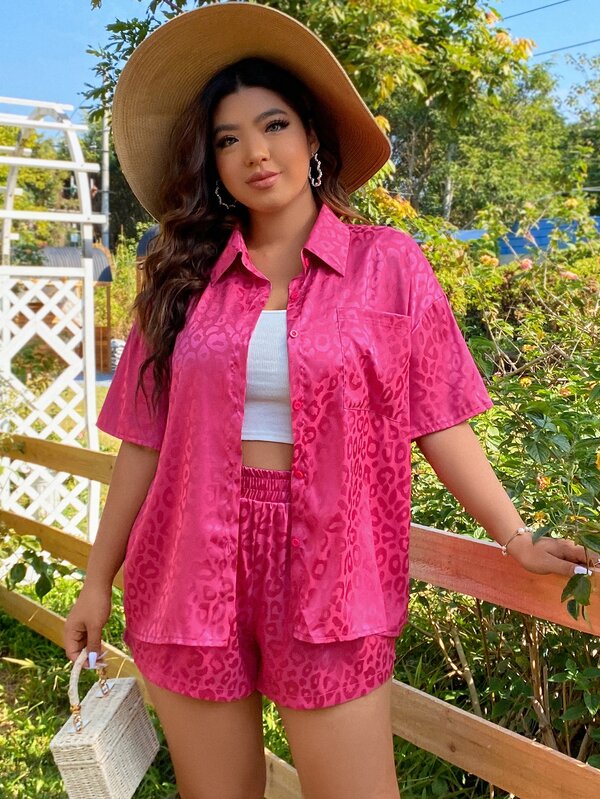 SHEIN VCAY Plus Leopard Jacquard Drop Shoulder Shirt & Shorts