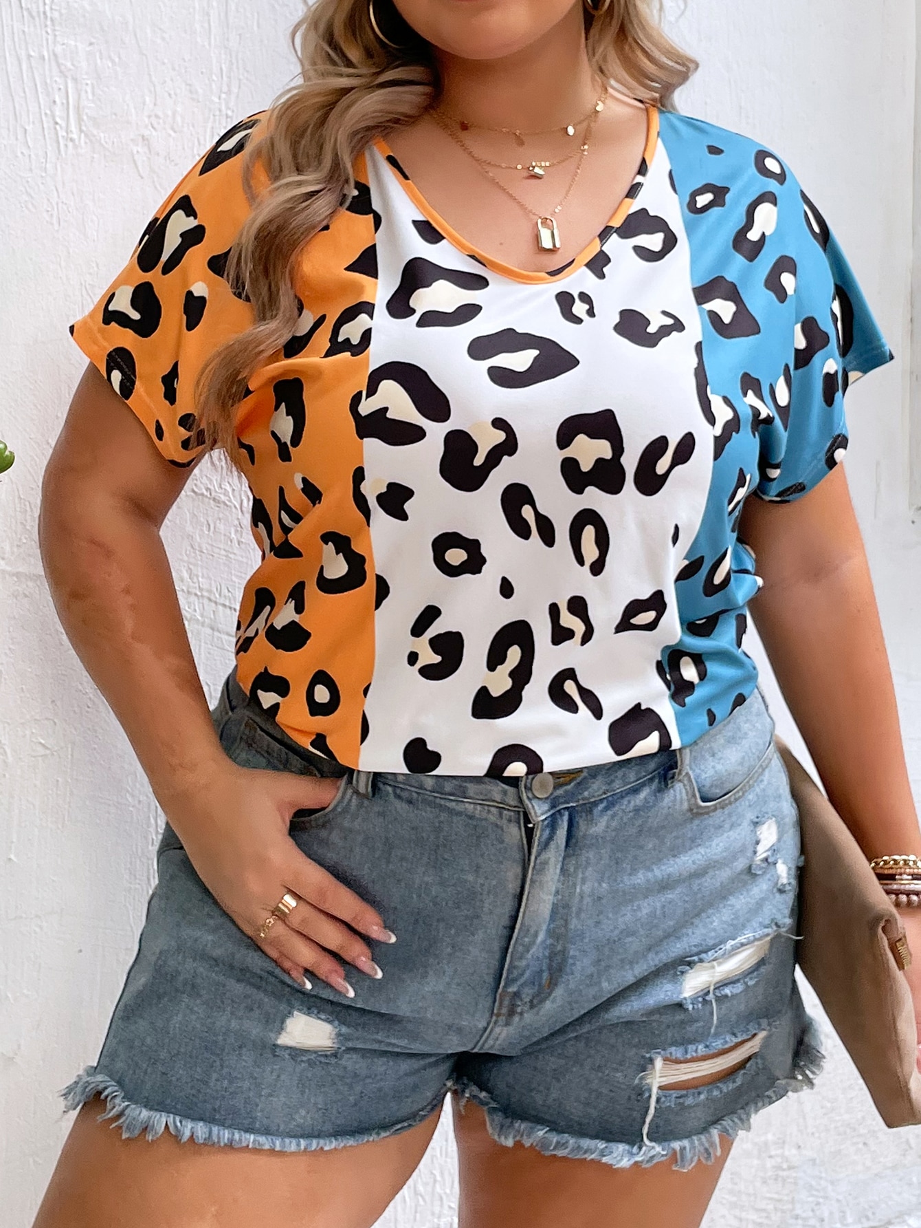SHEIN LUNE Plus Leopard Print Colorblock Batwing Sleeve Tee