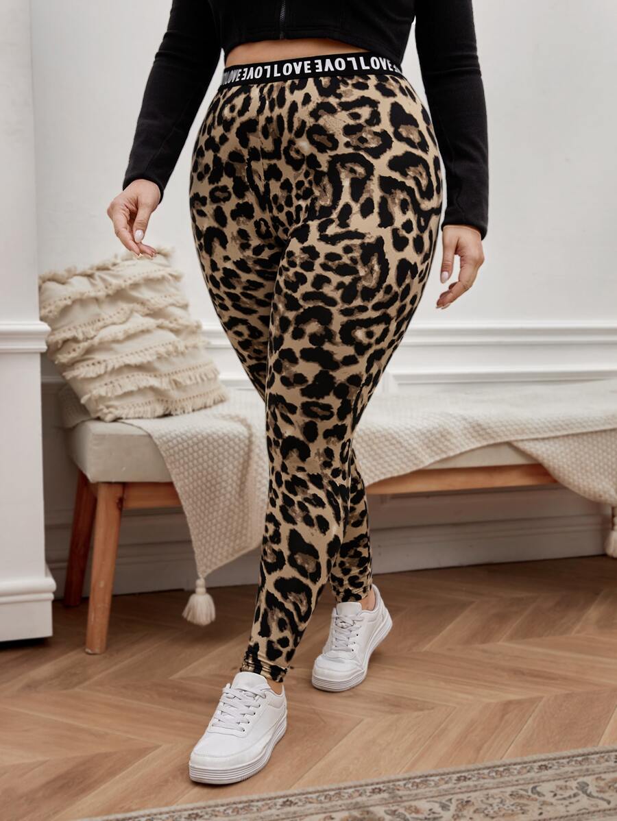 SHEIN LUNE Plus Leopard Print Contrast Letter Tape Leggings