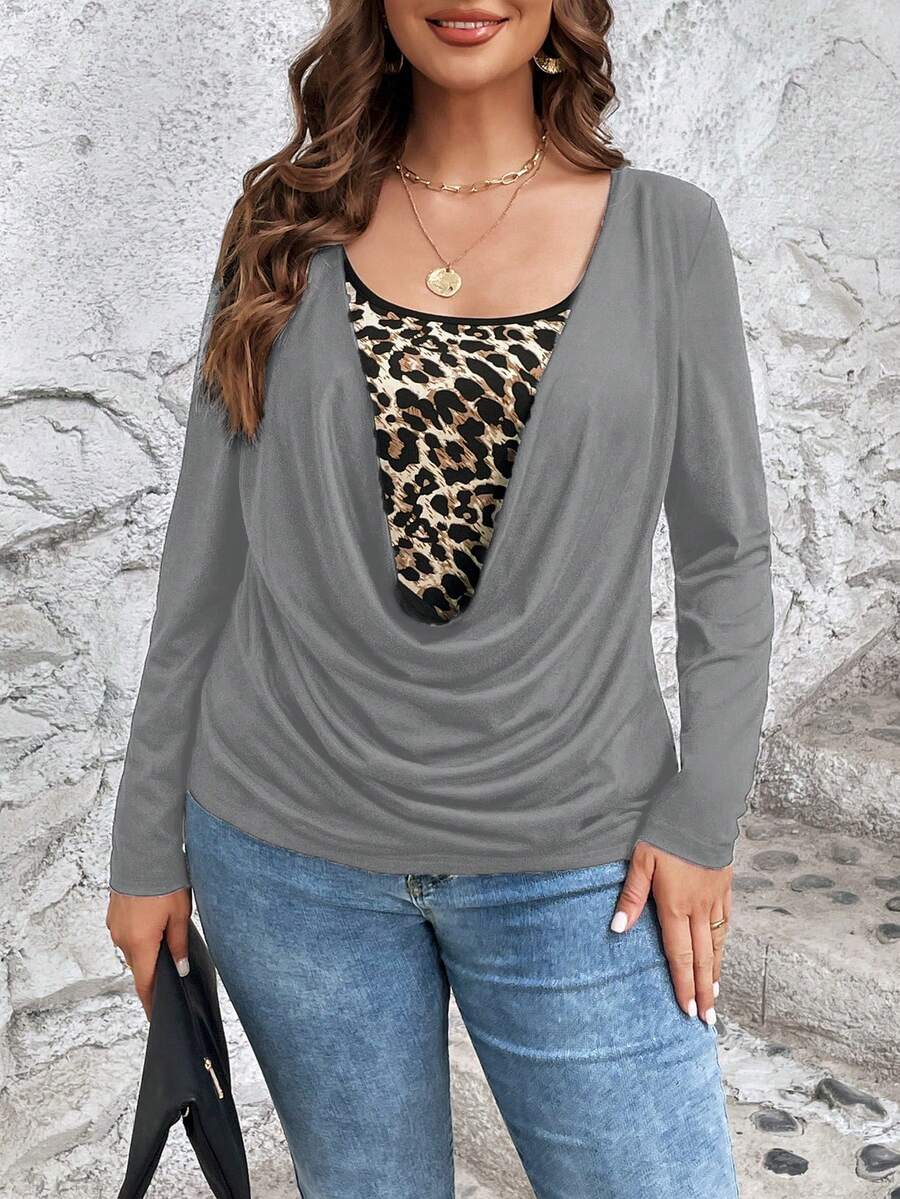 SHEIN LUNE Plus Leopard Print Draped Front Tee