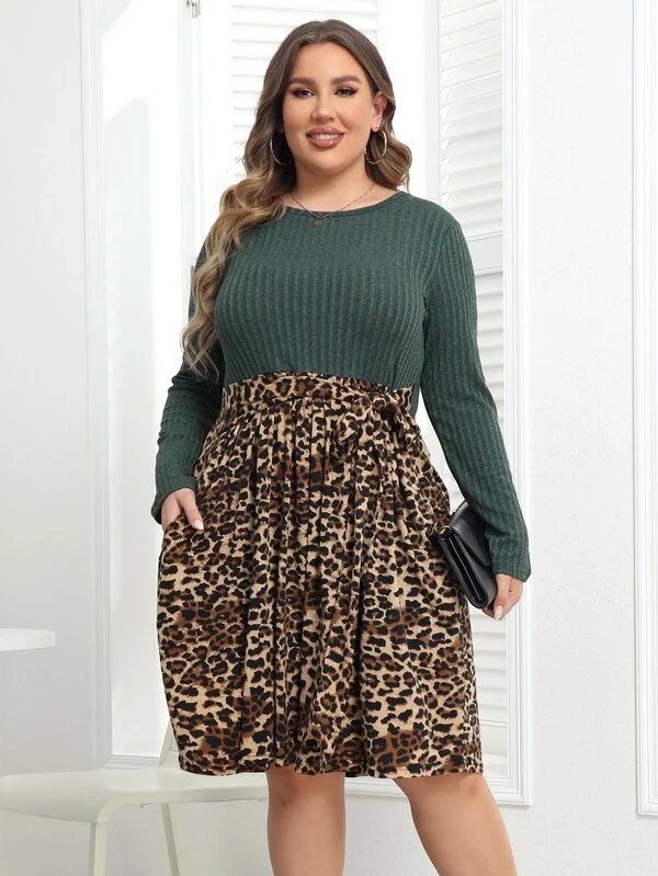 Plus Leopard Print Hidden Pocket Dress