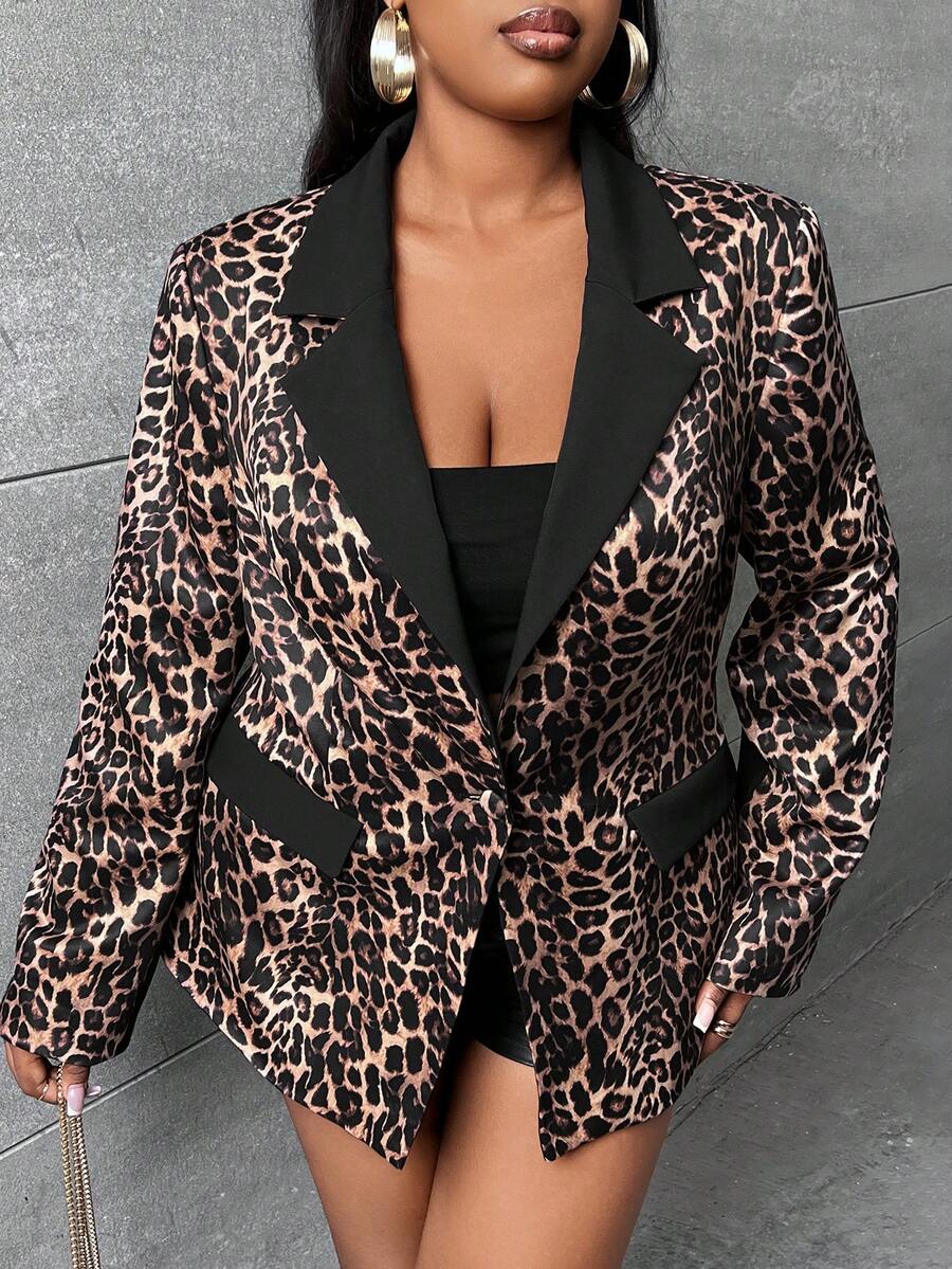 SHEIN Slayr Plus Leopard Print Lapel Neck Blazer