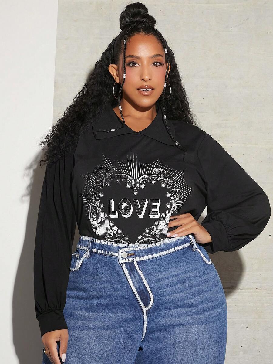 SHEIN CURVE+ Plus Letter & Floral Print Tee