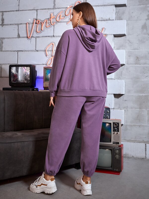 SHEIN Mulvari Plus Letter Embroidery Drop Shoulder Teddy Hoodie & Pants