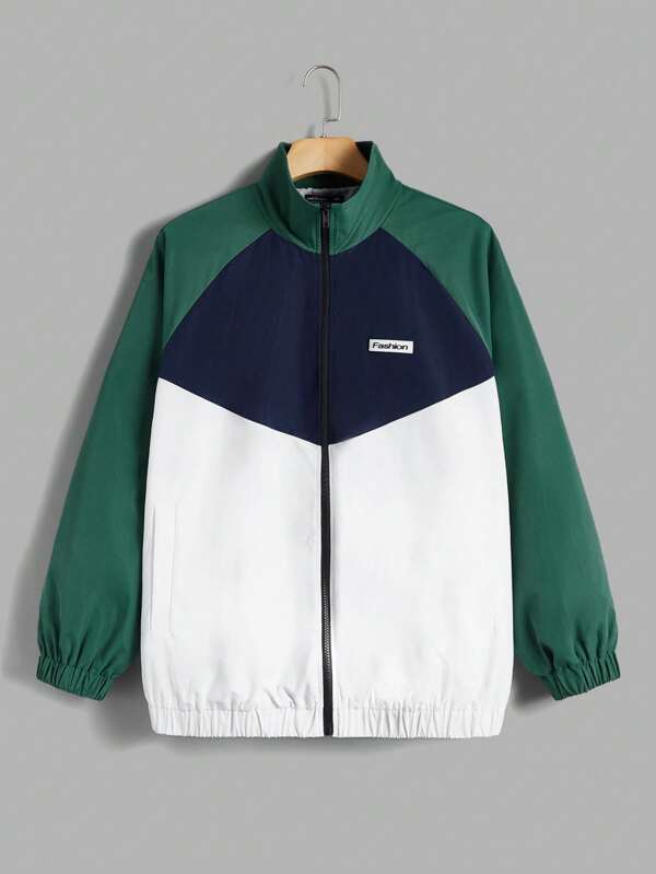SHEIN EZwear Plus Letter Graphic Colorblock Jacket
