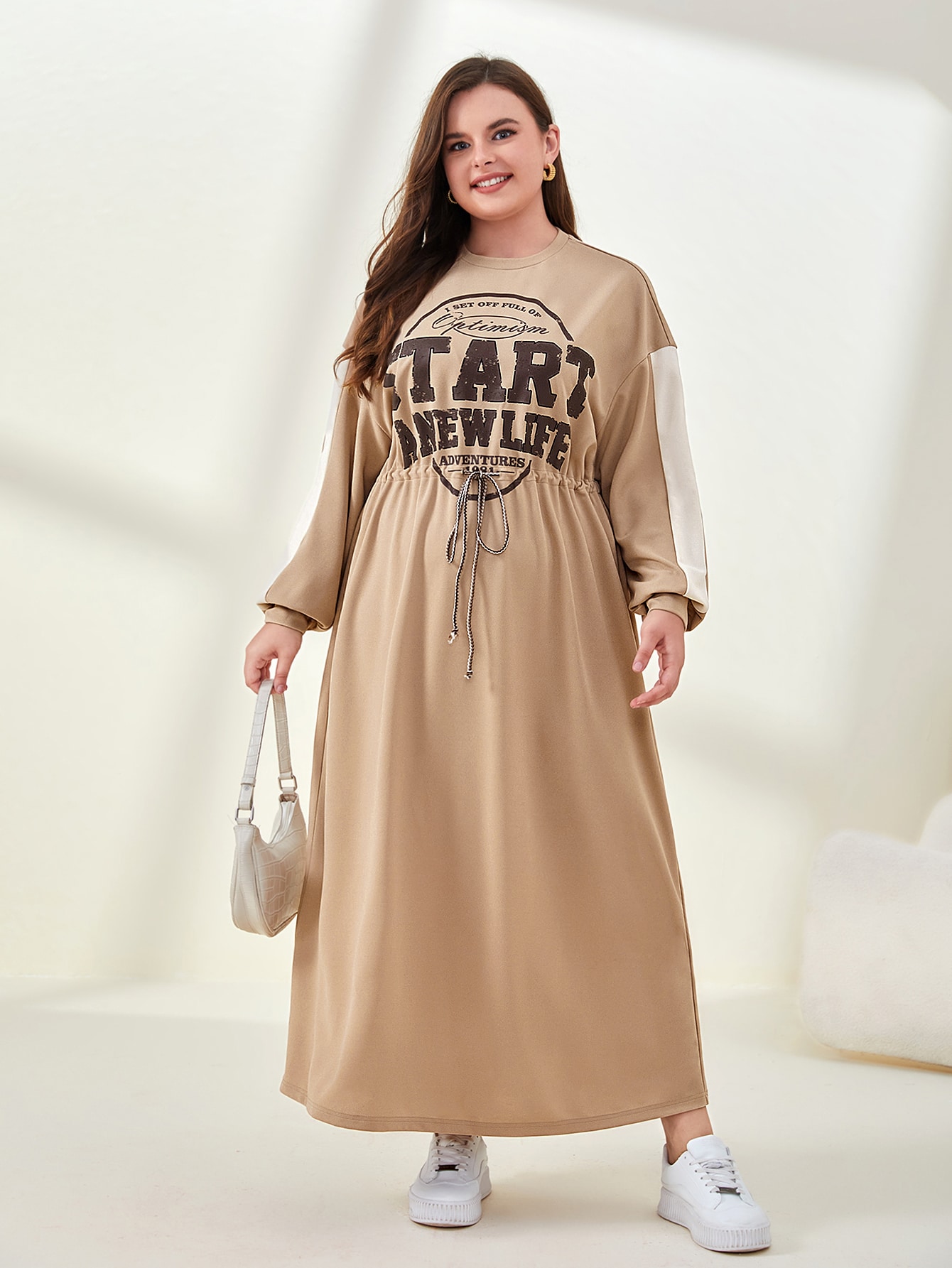 SHEIN Mulvari Plus Letter Graphic Drop Shoulder Drawstring Waist Dress
