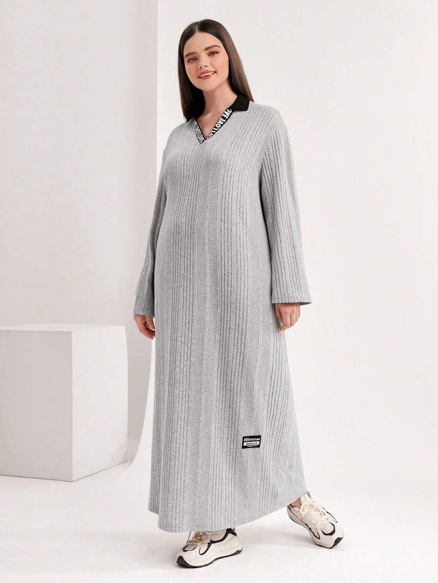 SHEIN Mulvari Plus Letter Graphic Drop Shoulder Dress