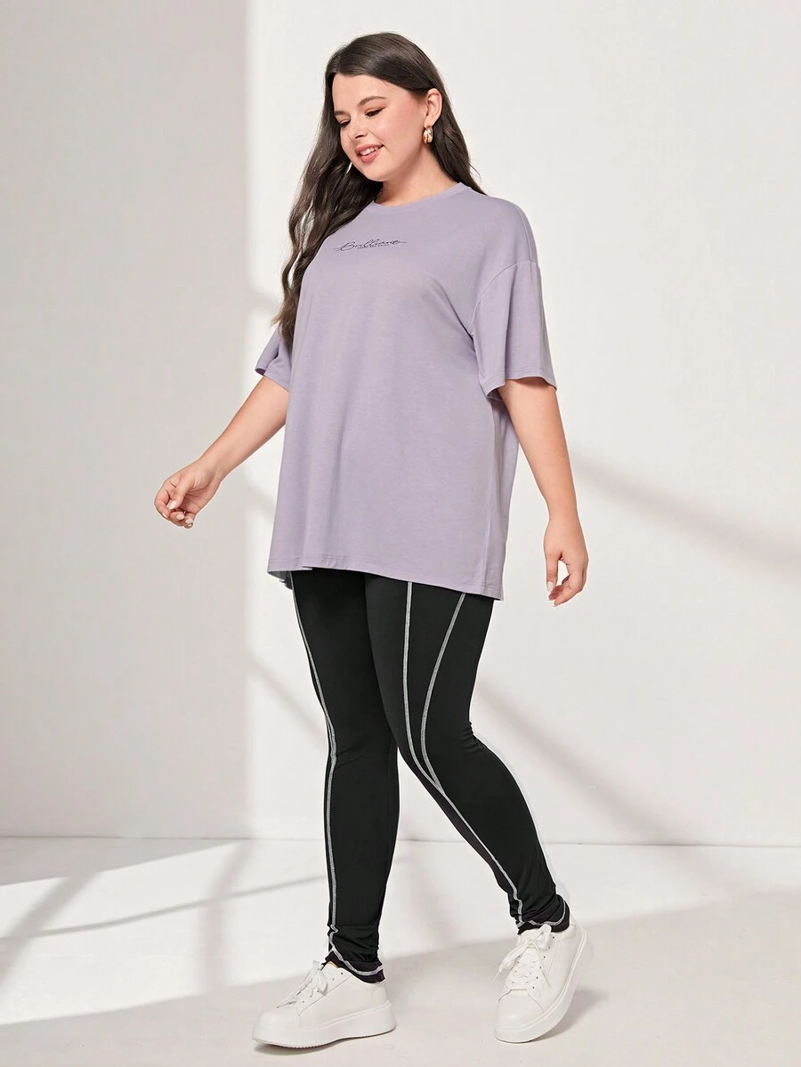 SHEIN Mulvari Plus Letter Graphic Drop Shoulder Tee & Leggings