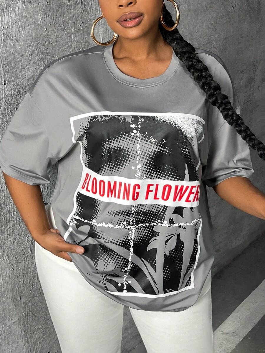 SHEIN Slayr Plus Letter Graphic Drop Shoulder Tee