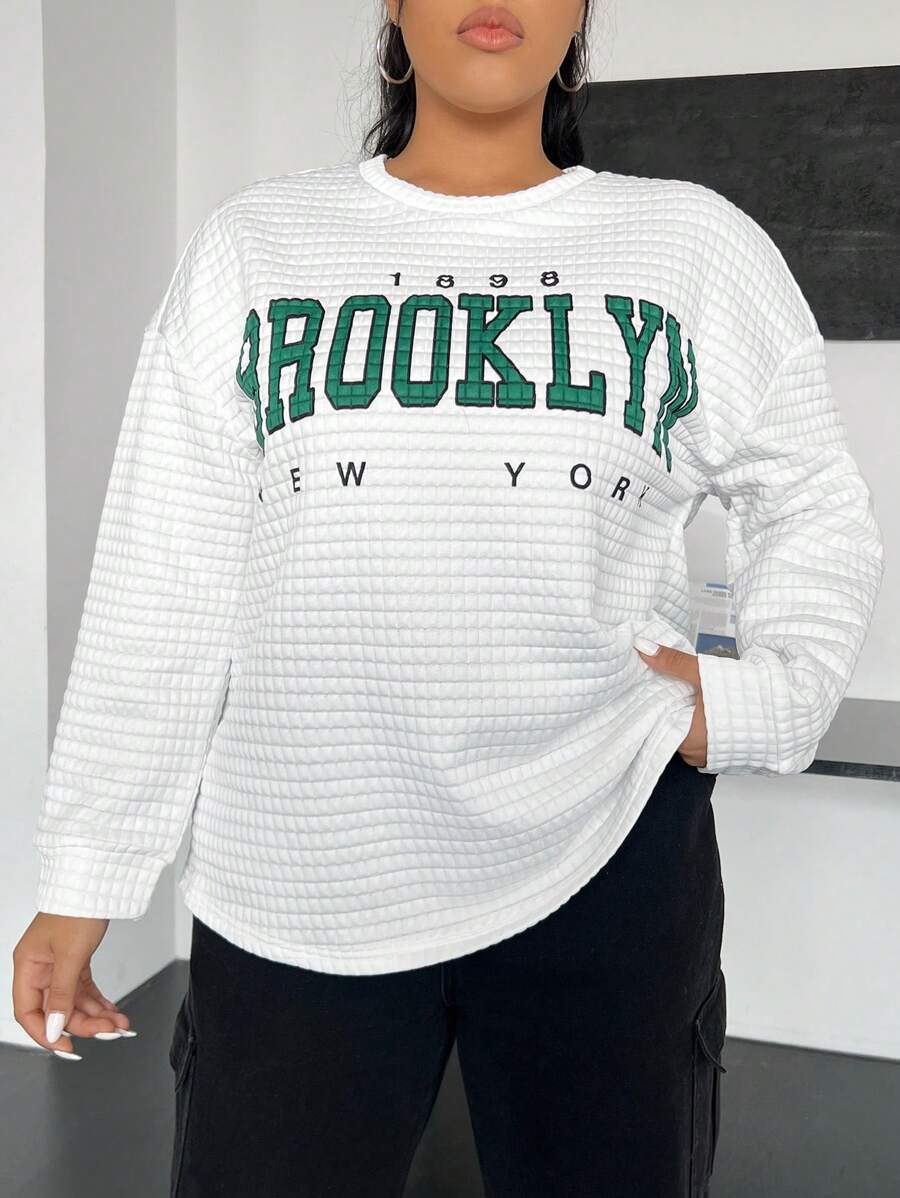 SHEIN EZwear Plus Letter Graphic Drop Shoulder Tee