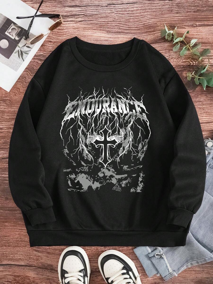 Plus Letter Graphic Thermal Lined Sweatshirt