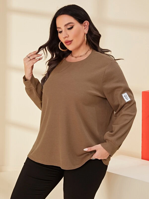 SHEIN Mulvari Plus Letter Patched Detail Tee