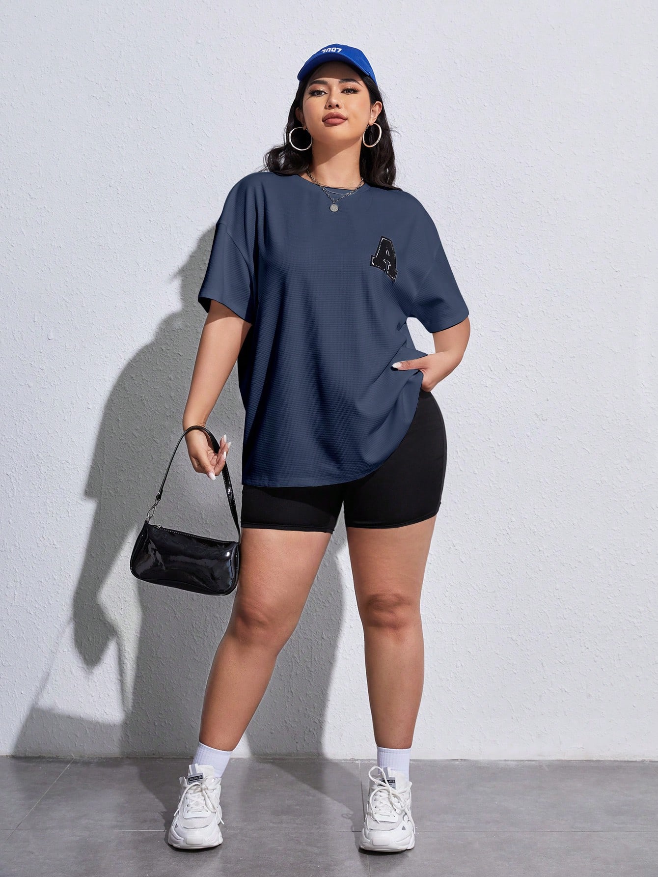 SHEIN EZwear Plus Letter Patched Drop Shoulder Tee