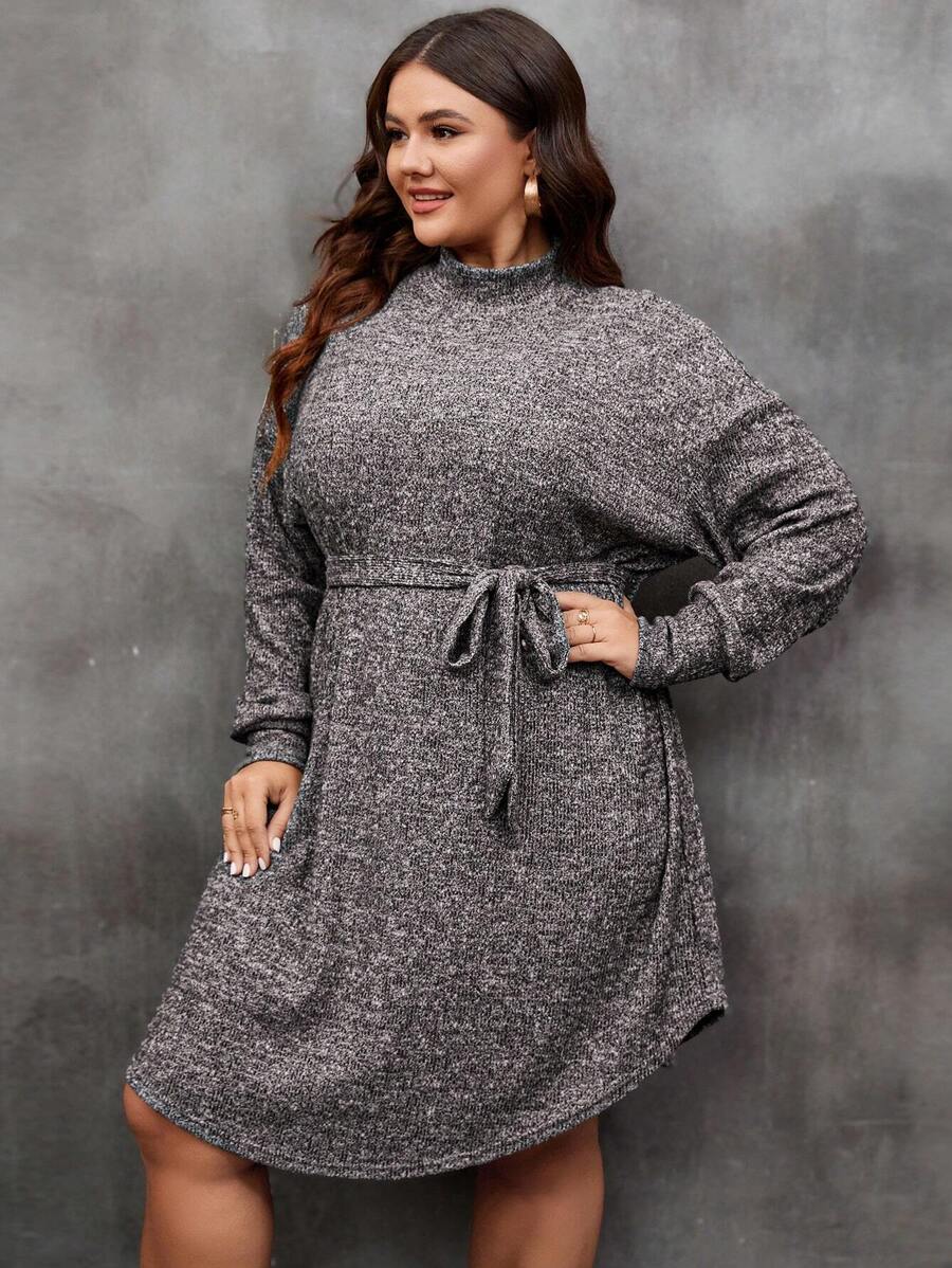 SHEIN LUNE Plus Mock Neck Drop Shoulder Belted Dress
