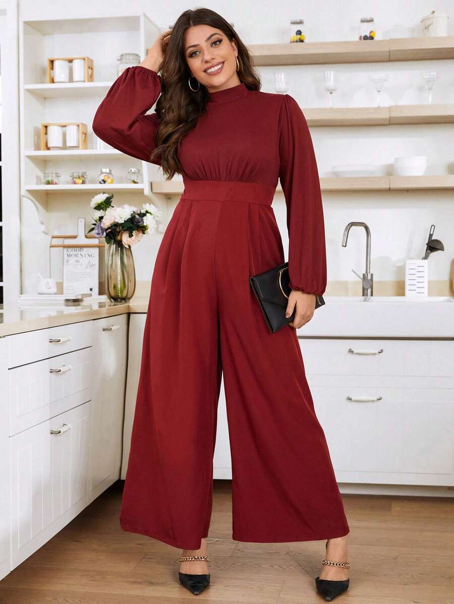 SHEIN Essnce Plus Mock Neck Lantern Sleeve Wide Leg Jumpsuit