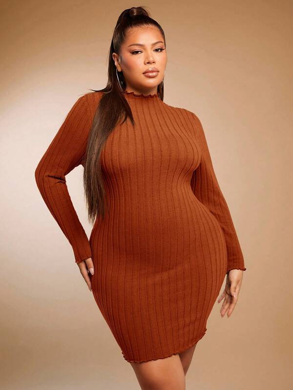SHEIN SXY Plus Mock Neck Lettuce Trim Bodycon Dress