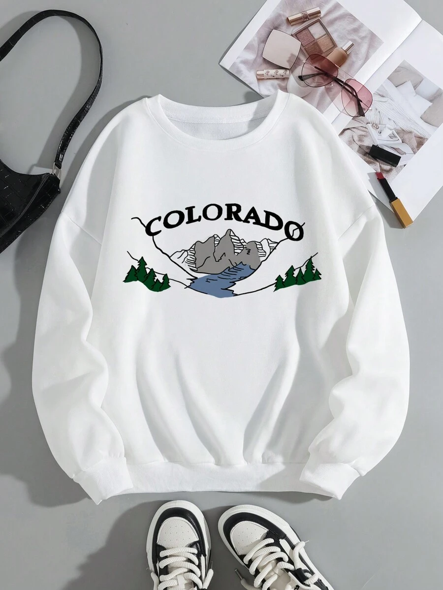 Plus Mountain & Letter Graphic Thermal Pullover