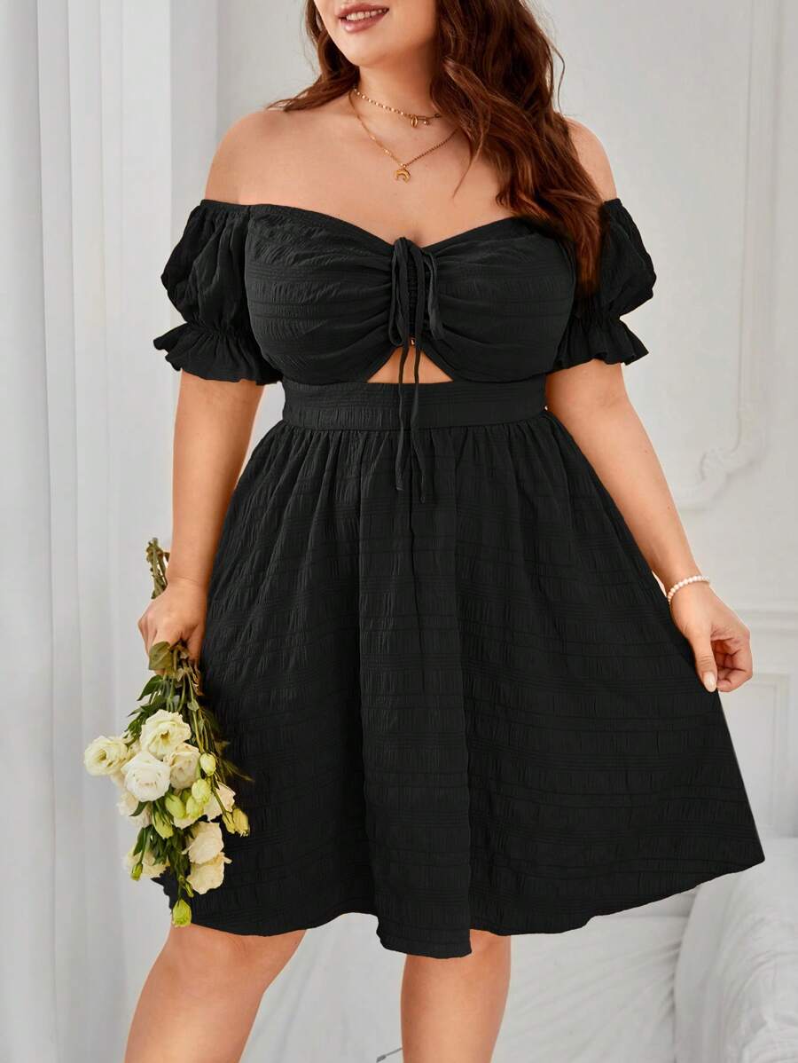 SHEIN WYWH Plus Off Shoulder Drawstring Front Cut Out Dress