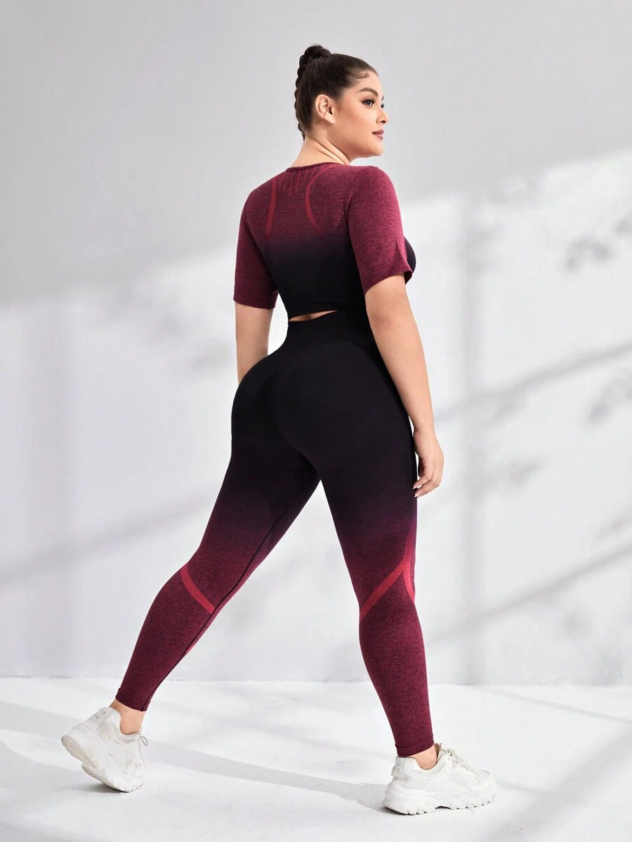 SHEIN Yoga Trendy Plus Ombre Print Tummy Control Sports Set