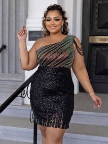 Joyfunear Plus One Shoulder Sequin Bodycon Dress