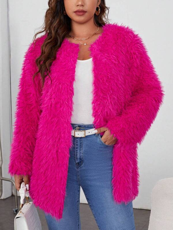 SHEIN Privé Plus Open Front Fuzzy Coat
