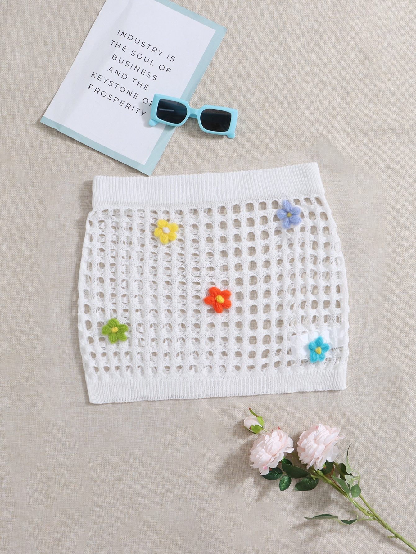 Plus Open Knit Appliques Cover Up Skirt
