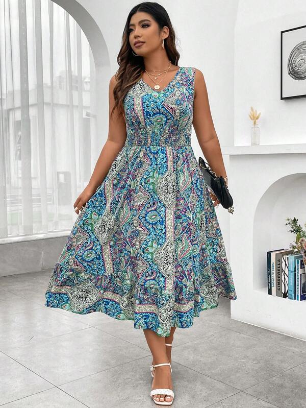 SHEIN VCAY Plus Paisley Print Ruffle Hem Dress