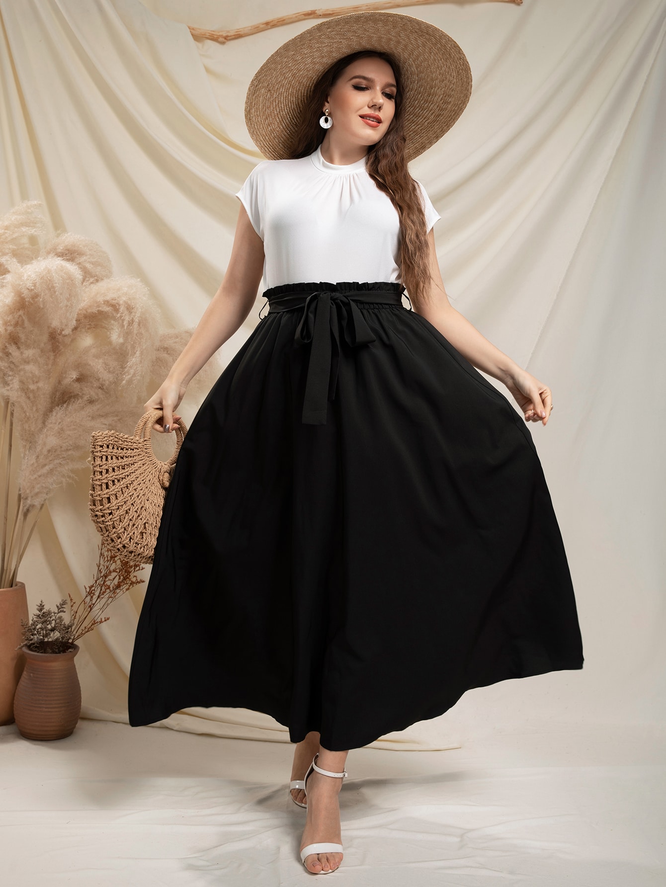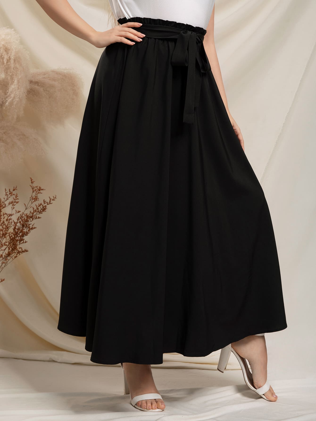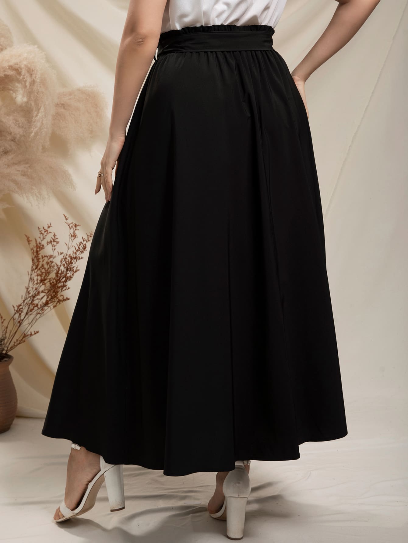 SHEIN Modely Plus Paperbag Waist Belted Skirt