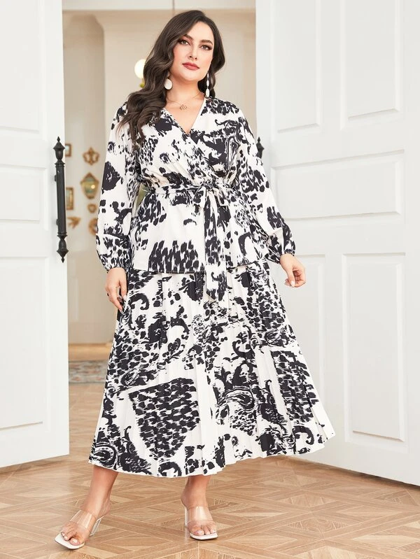 SHEIN Mulvari Plus Patchwork Print Elastic Waist Skirt