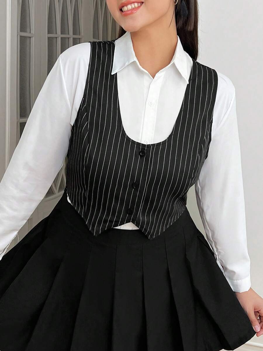 SHEIN Qutie Plus Pinstriped Print Vest Blazer Without Shirt