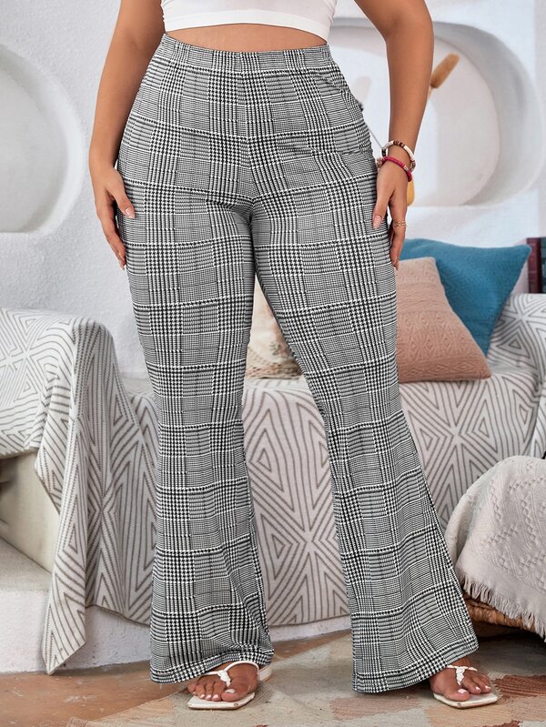 SHEIN Modely Plus Plaid Flare Leg Pants