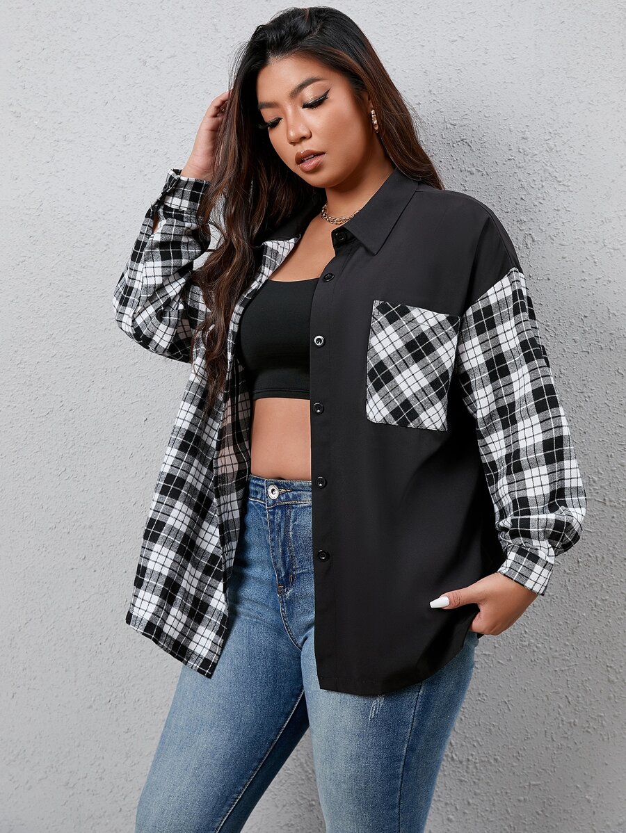 Plus Plaid Print Drop Shoulder Shirt