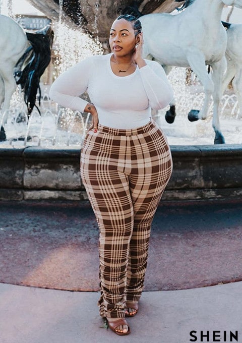 SHEIN SXY Plus Plaid Stacked Pants