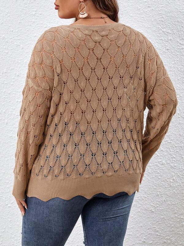 SHEIN VCAY Plus Pointelle Knit Drop Shoulder Sweater