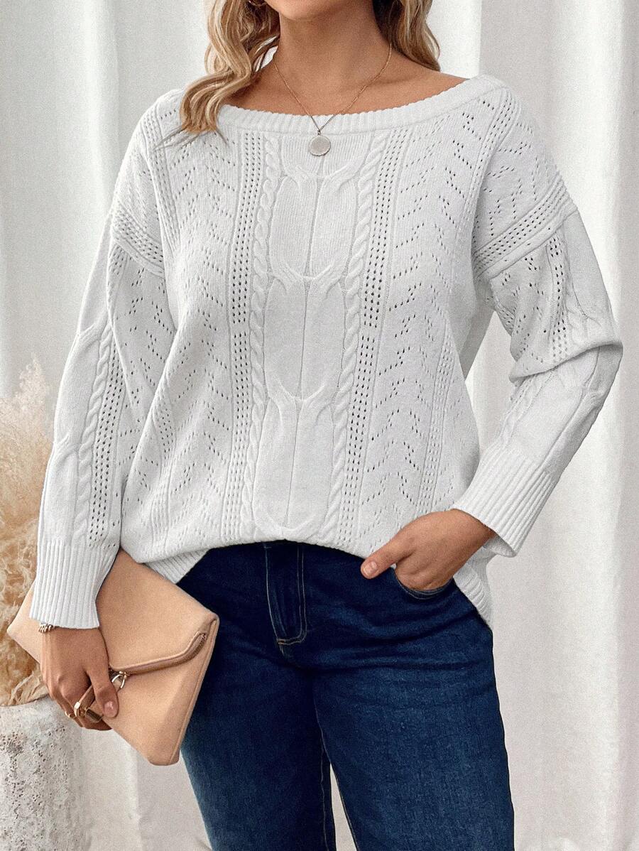 SHEIN LUNE Plus Pointelle Knit Drop Shoulder Sweater