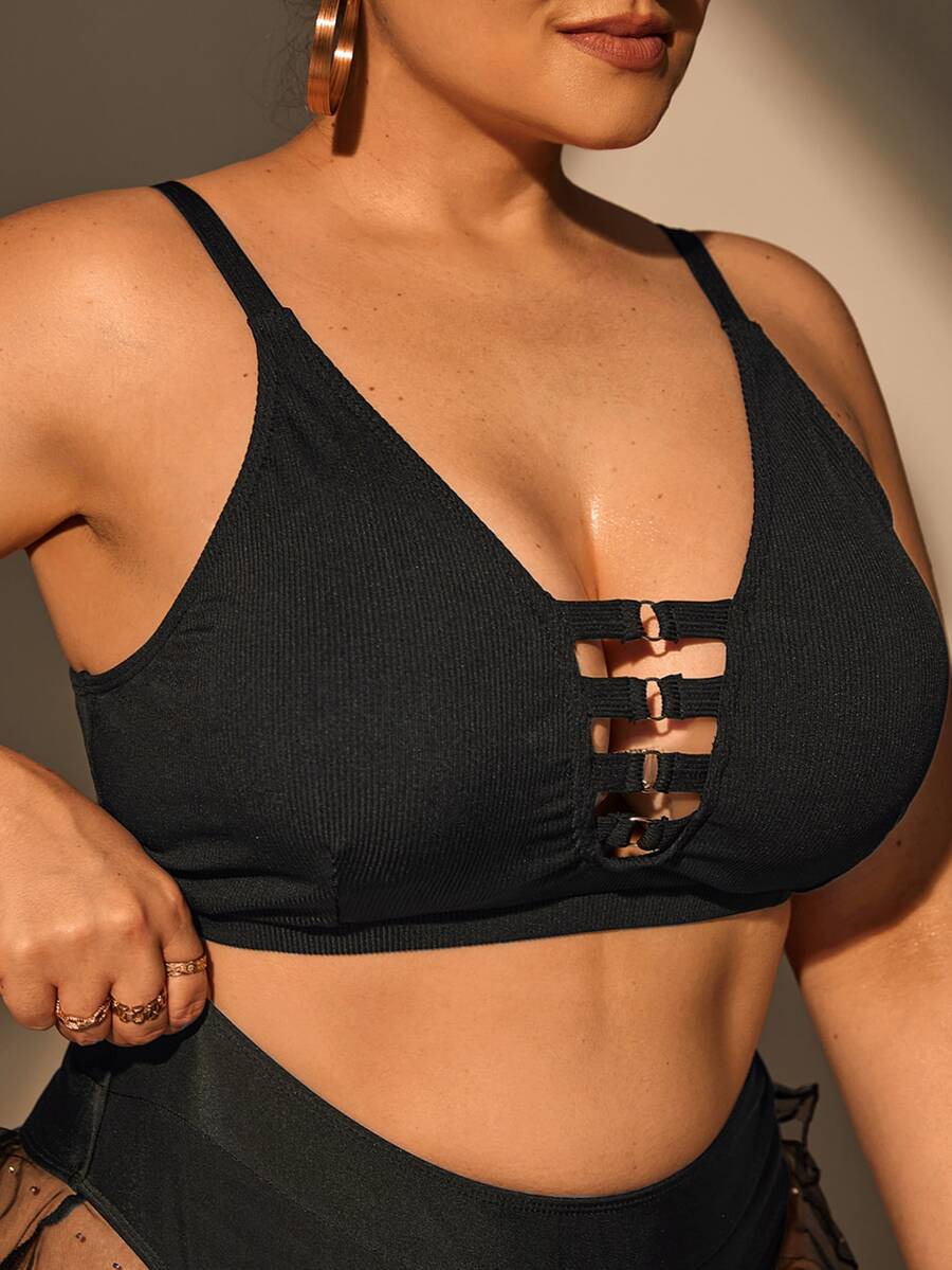 SHEIN SXY Plus Rib-knit O-ring Cut Out Bikini Top