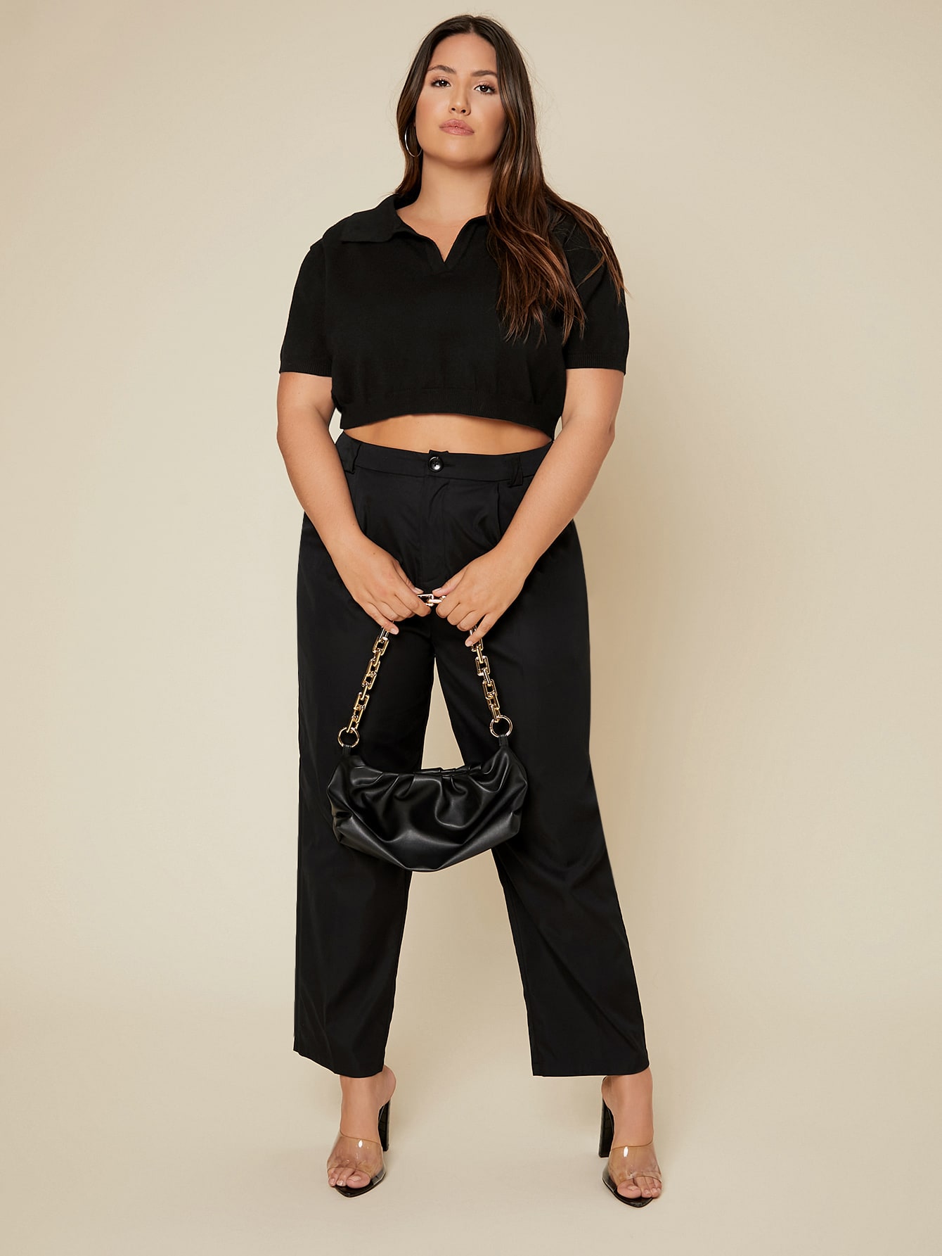 SHEIN EZwear Plus Ribbed Knit Crop Top