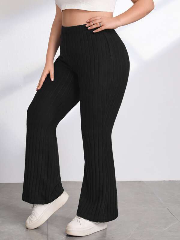 SHEIN EZwear Plus Ribbed Knit Flare Leg Pants
