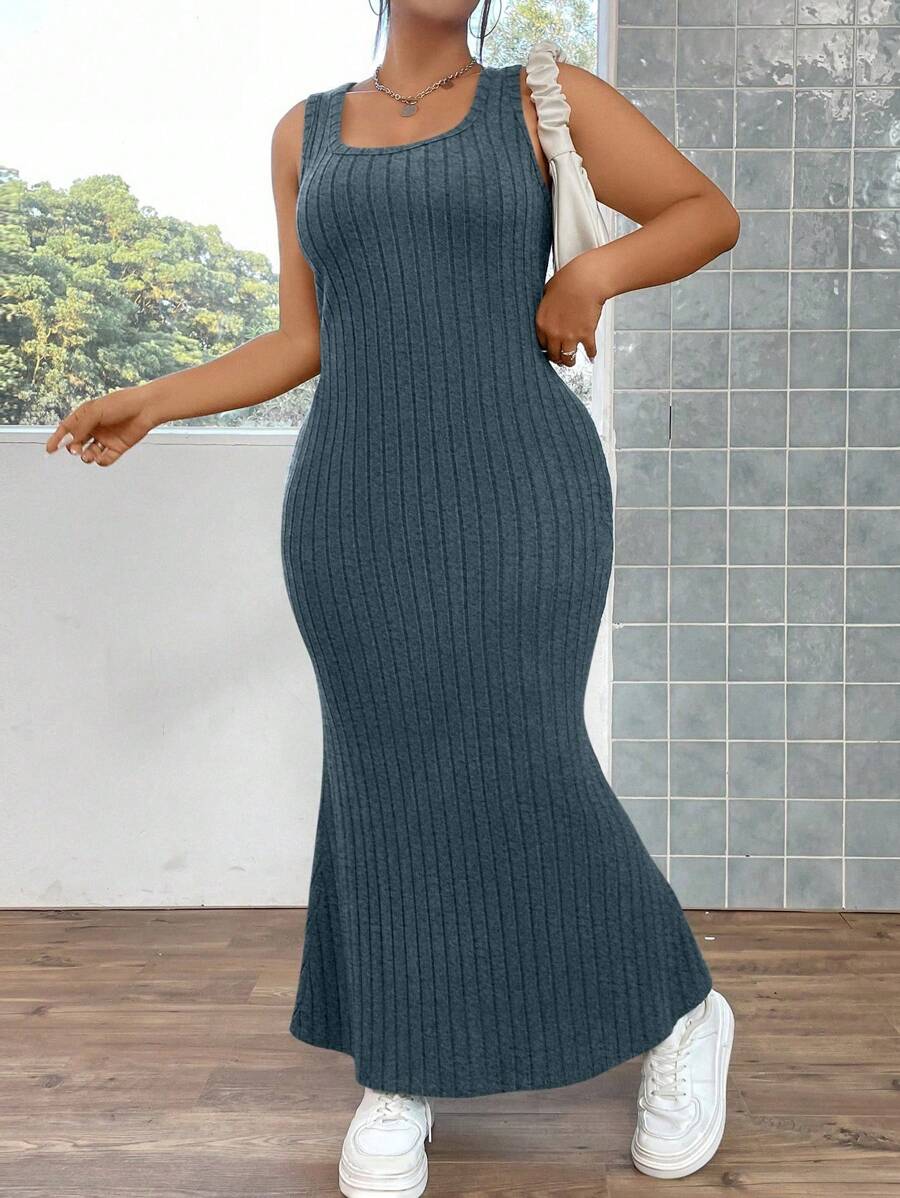 Plus Ribbed Knit Mermaid Hem Tank Dress