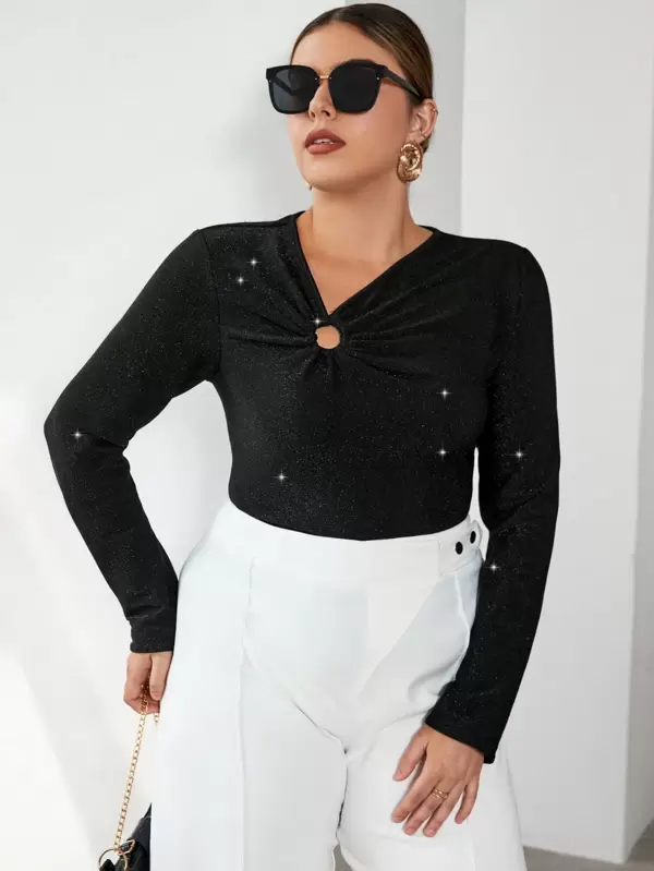 SHEIN Privé Plus Ring Linked Glitter Tee