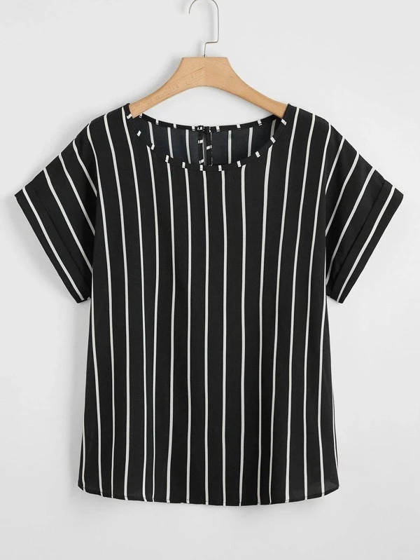 SHEIN LUNE Plus Rolled Sleeve Striped Top