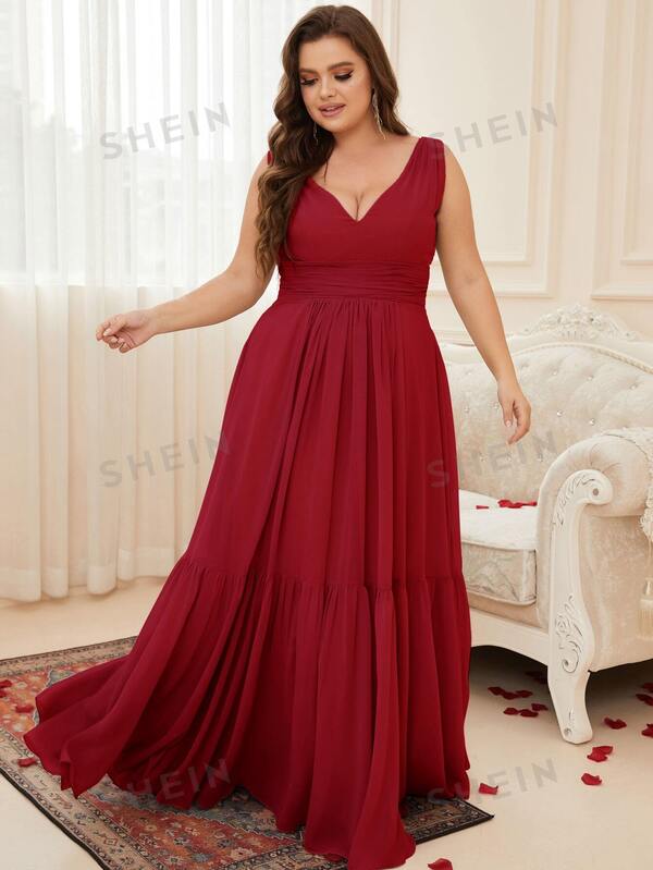 Plus Ruched Ruffle Hem Chiffon Bridesmaid Dress