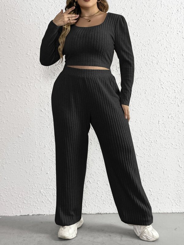 SHEIN Essnce Plus Scoop Neck Crop Tee & Pants