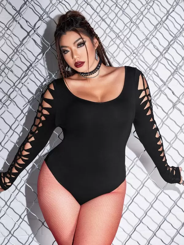 ROMWE PUNK Plus Scoop Neck Cut Out Bodysuit