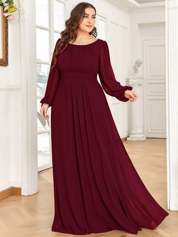 EVER-PRETTY Plus Scoop Neck Lantern Sleeve Ruched Waistband Formal Dress