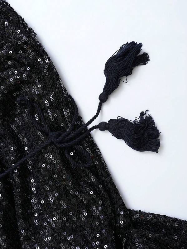 Plus Sequin Butterfly Sleeve Belted Maxi Dress