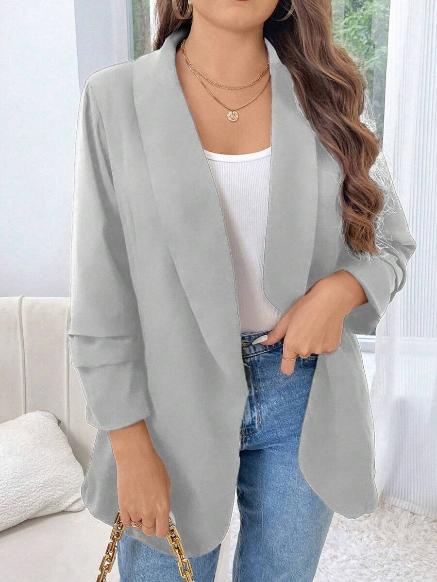 SHEIN Essnce Plus Shawl Collar Open Front Blazer