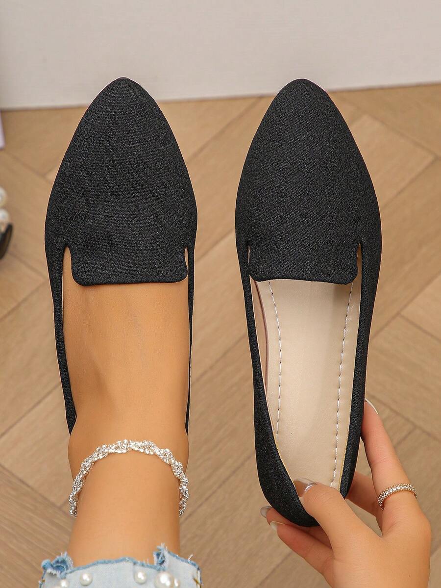 Plus Size 36-45 Fashion Sweet Pointed Toe Flat Shoes, Casual Slip-On, Lightweight, Comfortable, Non-Slip, Low Vamp, Black, Spring/Summer/Autumn